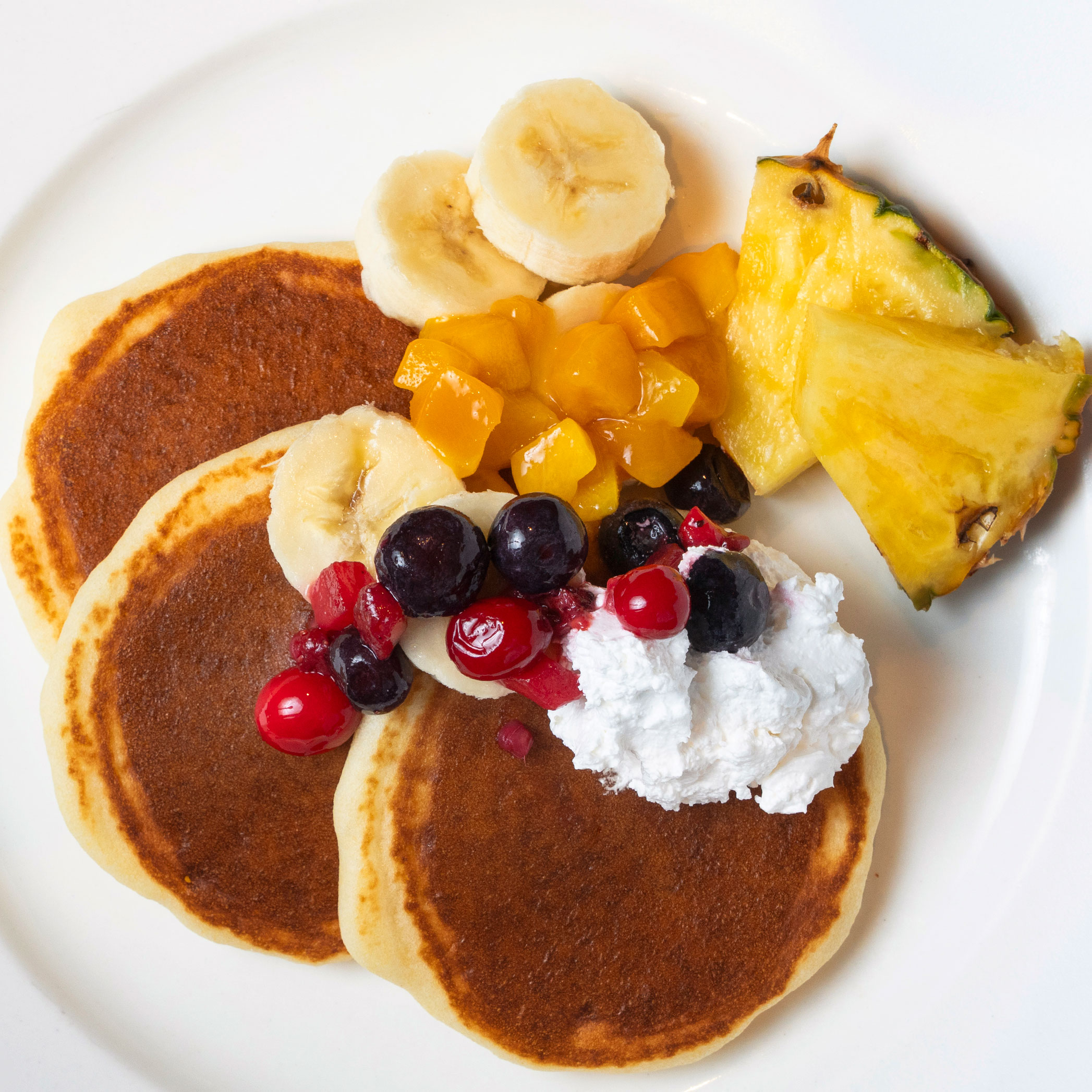 そして、まんまるのパンケーキが焼きあがる人気のパンケーキメーカーも。フルーツやソースで自由に飾り付け、あなただけの一皿を完成させてください。